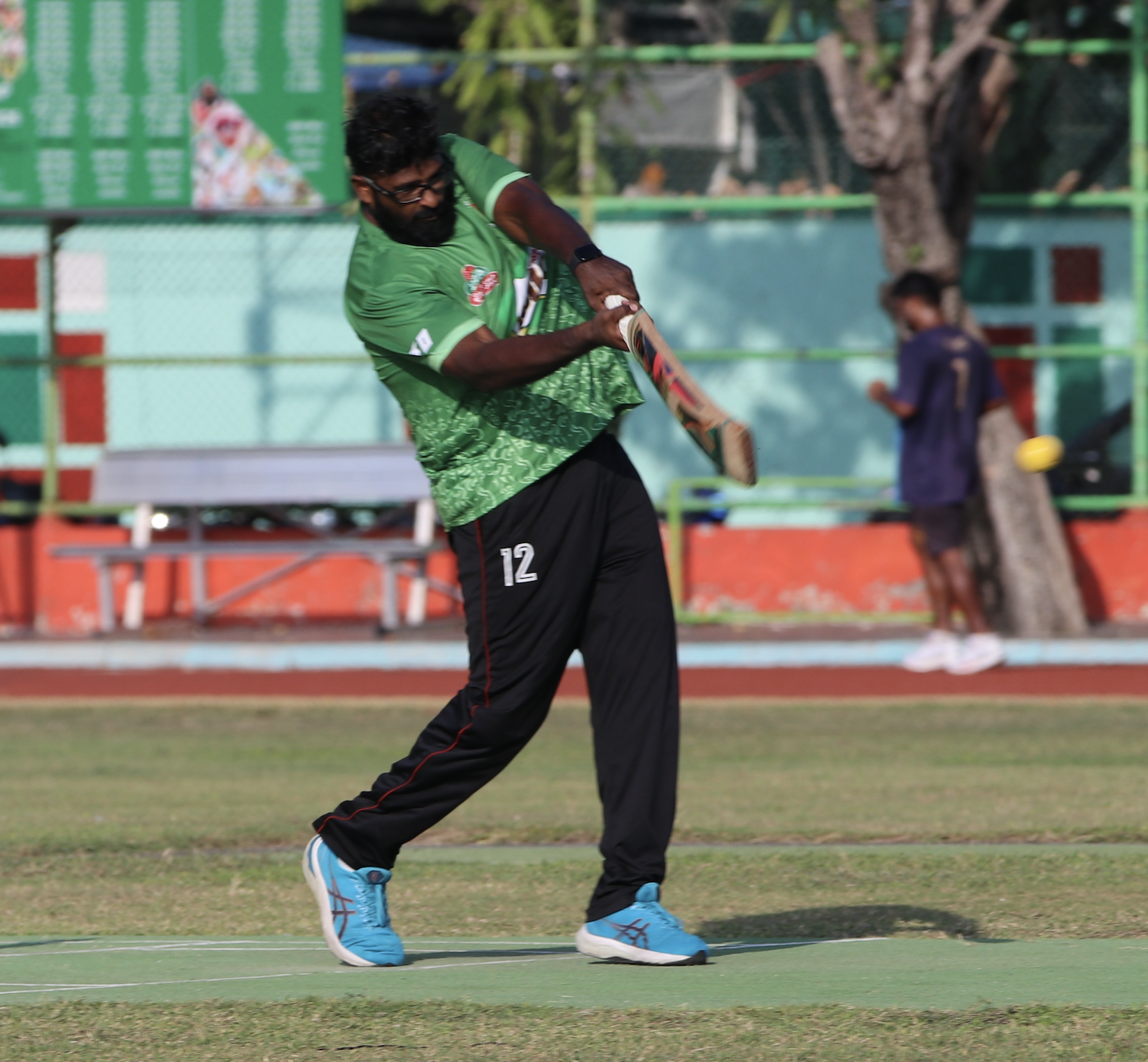 Ibrahim Sadhoof with 28 runs in 12 balls (6s x 3 / 4s x 2)