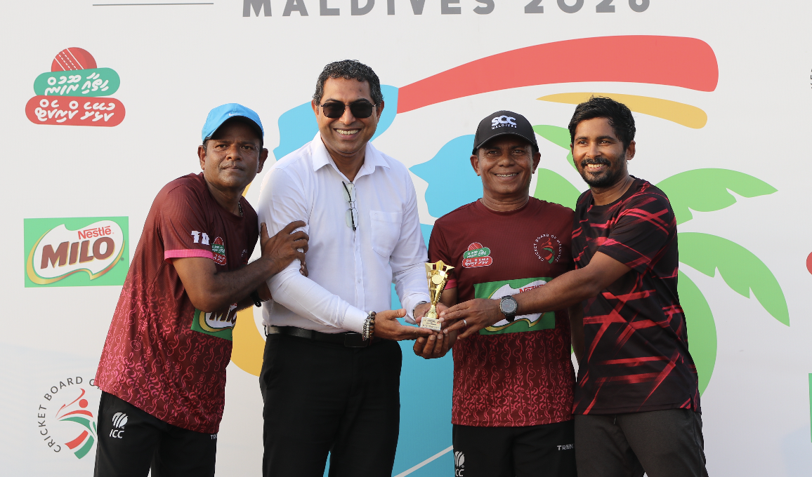 Chief Guests at todays match and presenting the awards were Mr. Mahinda Vithana, Sales Manager for Nestle – Milo Maldives & Mr Mohamed Faisal, President of the Cricket Board of Maldives.